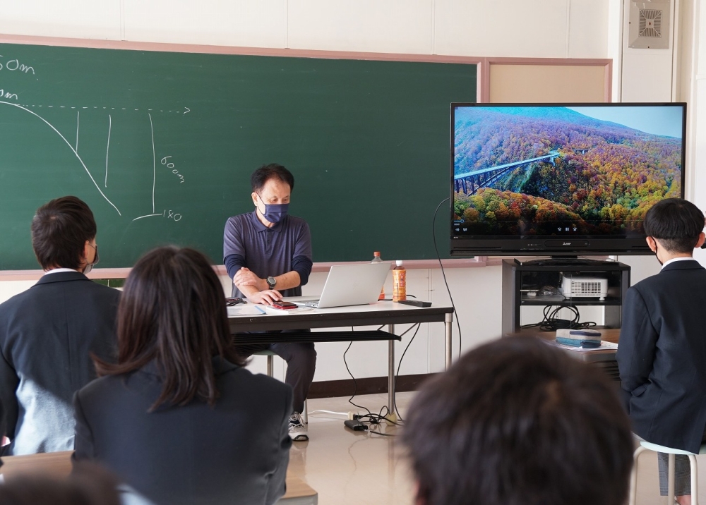 内の高校、3年生を対象に法規を含めた座学と体育館での実技演習をプログラムとした「ドローン教室」を行いました。