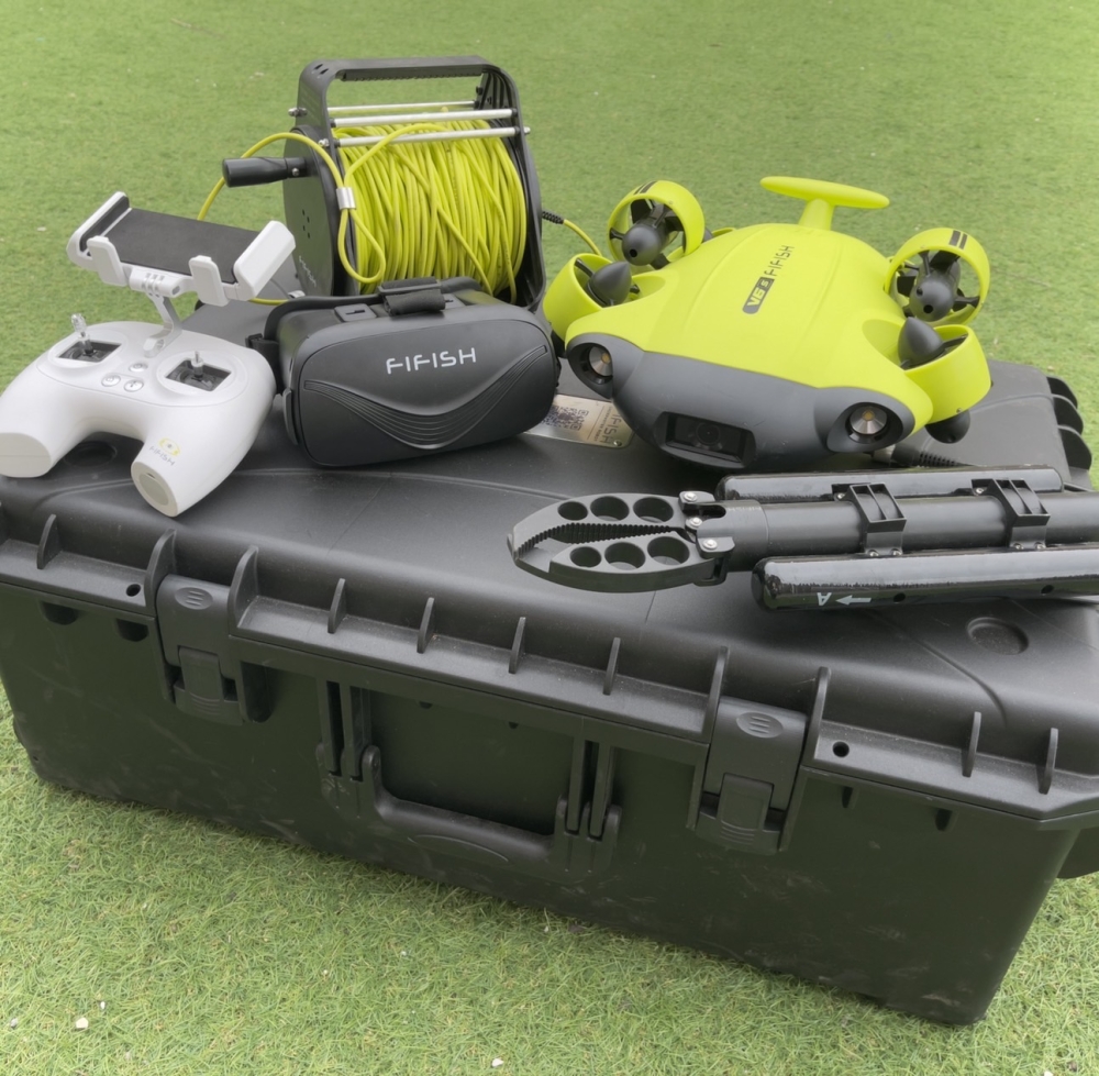 今回、最近話題の「水中ドローン」についても座学に加え講師の方に協力いただきました。皆さん熱心に興味深く受講されていました。
