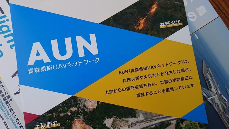 AUNは青森県南地域において自然災害(地震、津波、風水害)や林野火災などが発生した場合、ドローンにより被災状況を撮影し早期の状況把握と復旧対策に貢献することを目指した任意団体で、青森県南の6社から構成されています。