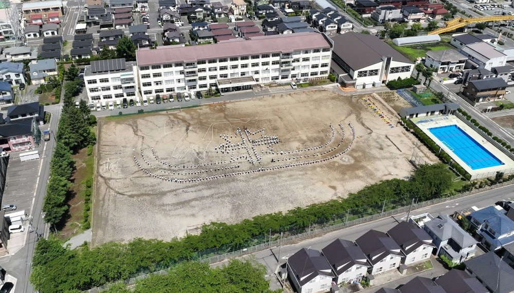 市内小学校で創立40周年記念事業の人文字をドローン撮影しました![]()