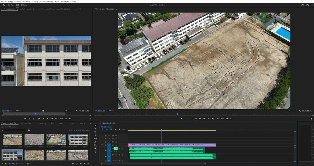 ・ドローン撮影をするときは学校の職員さんが立ち会いドローンの映像を別モニターで確認しながら画角を決めて撮影することができます。